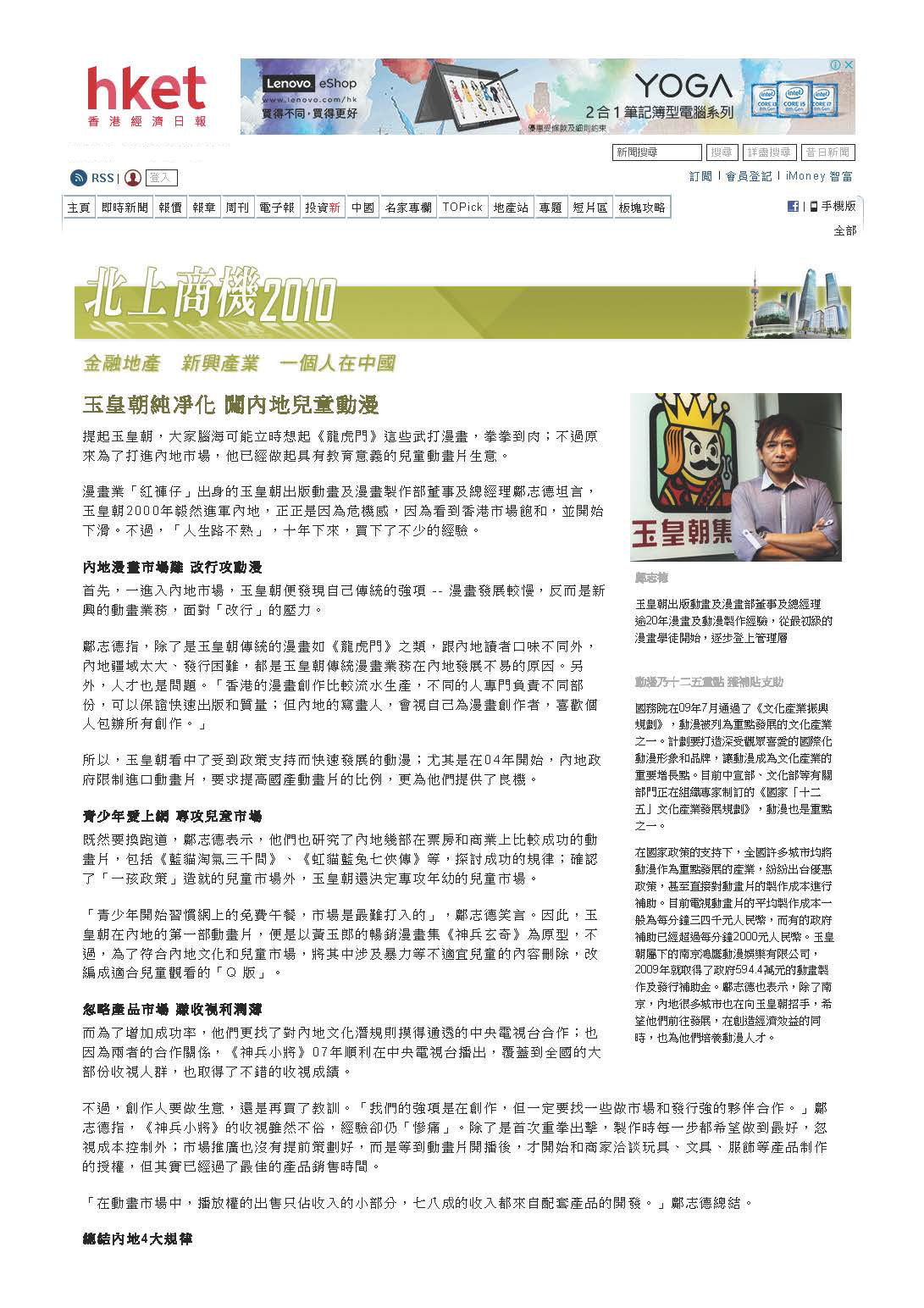 香港經濟日報專題訪問.